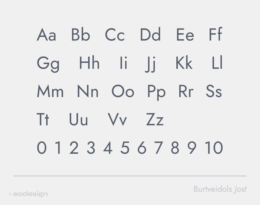 Alūksnes novada bibliotēkas vizuālās identitātes burtveidols ir Jost. Pamattekstam tiek izmantots burtveidola stils Regular, bet virsraksti tiek rakstīti ar lielajiem burtiem, izmantojot burtveidola stilu Medium.