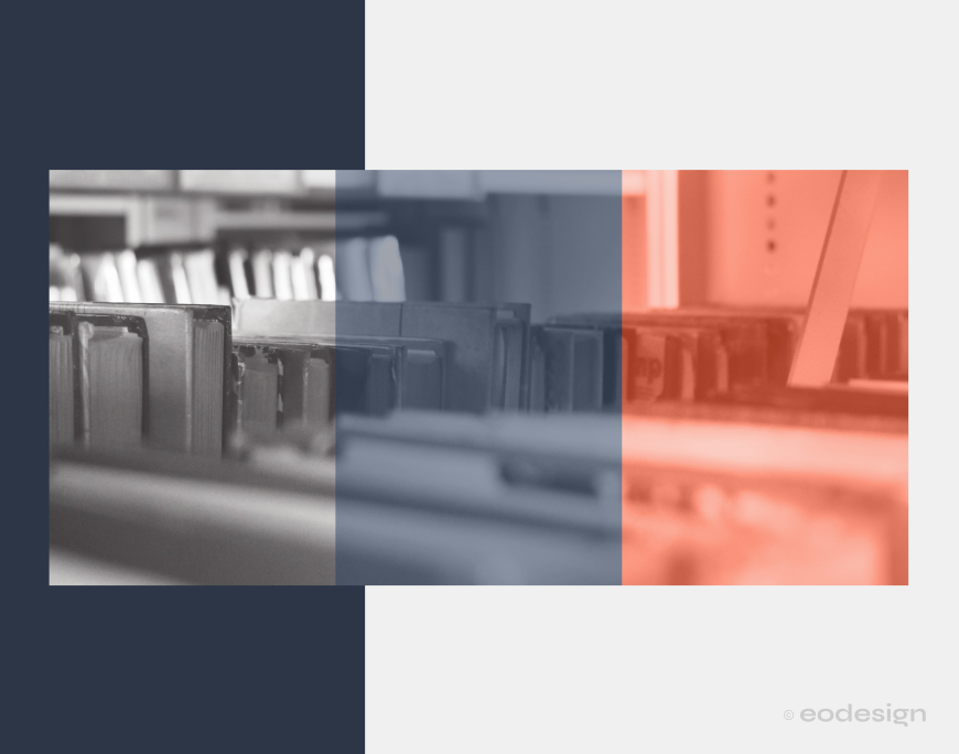 Bibliotēkas vizuālās identitātes krāsu paleti veido tumši zilā, baltā un oranžā krāsa. Zilā un baltā kalpo kā pamata krāsas, radot stabilu un profesionālu tēlu, savukārt oranžā izmantota akcentiem – virsrakstos un grafiskos elementos – piešķirot tēlam dzīvīgumu un enerģiju.