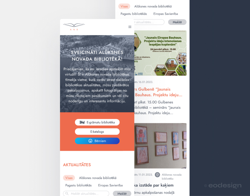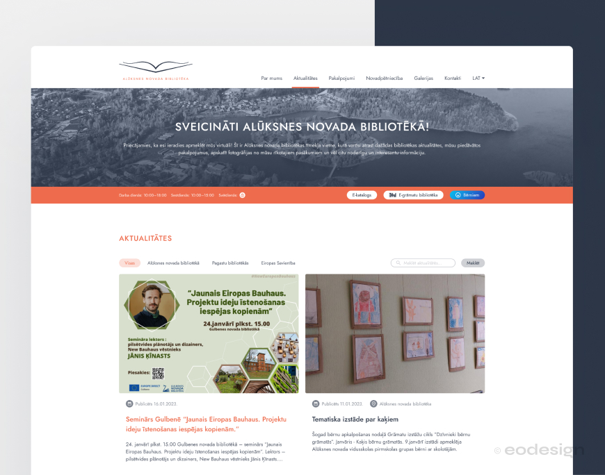 Ievērojot vizuālās identitātes vadlīnijas, izstrādāts jauns Alūksnes novada bibliotēkas tīmekļa vietnes dizains.